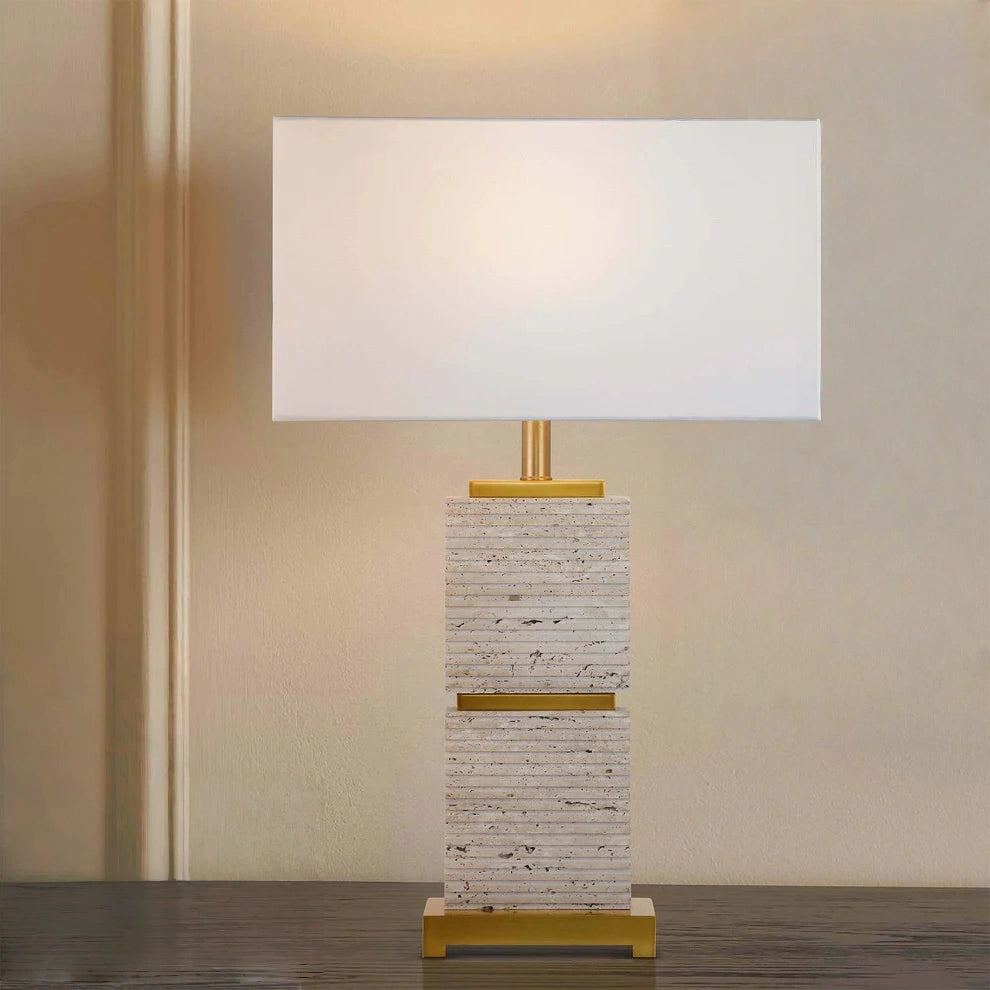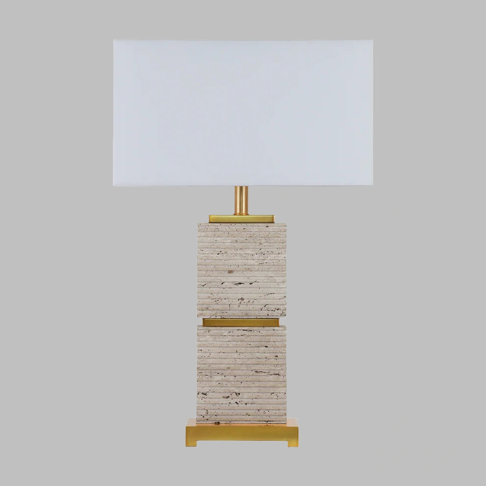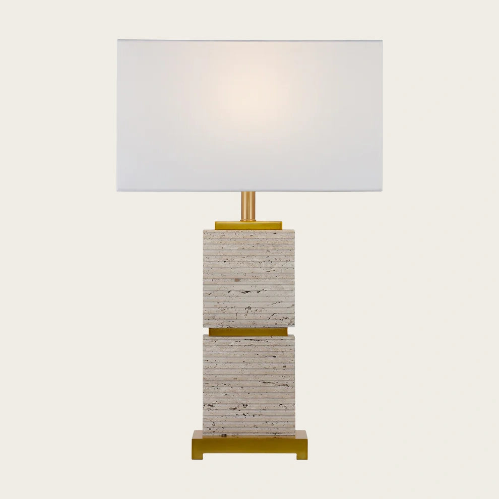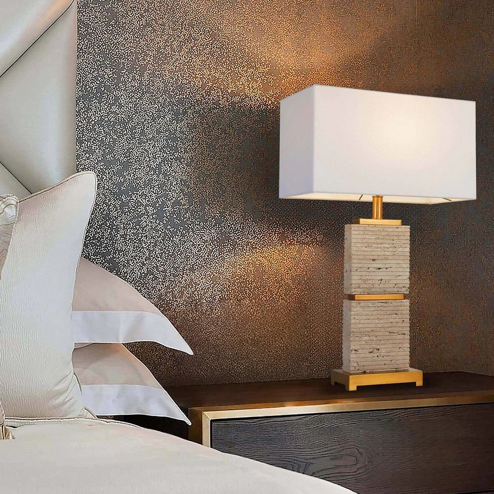 Dynamic Light Interaction: Fabric Shade Casts Warm, Layered Shadows on Stone Surface