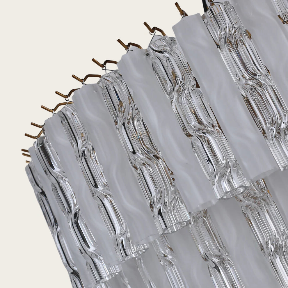 A trusted B2B partner for high-end lighting, we proudly introduce the Twisted Two-Tone Glass Chandelier. This exceptional fixture seamlessly blends modern minimalist design with the timeless artistry of traditional craftsmanship. Designed to elevate the ambiance of commercial and residential spaces, it offers discerning clients a unique and customizable lighting solution.